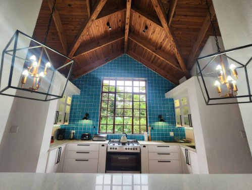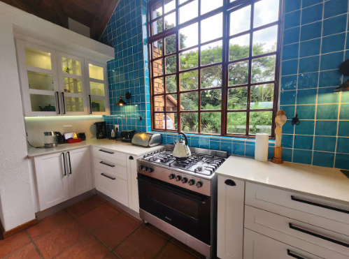* Built-in kitchen cabinets with ample storage space.